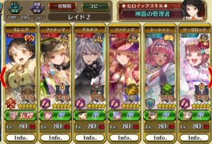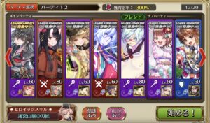 スキル順はヴェロニカ→カシュウ→チドリ→ファティマ→フレンド特効