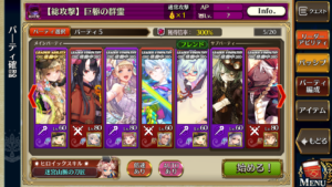 リーダーから順にスキル一周。特効をボスのあるレーンの中列に配置。(遠距離1人ニートになるけど大丈夫)